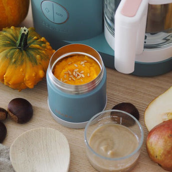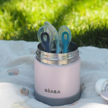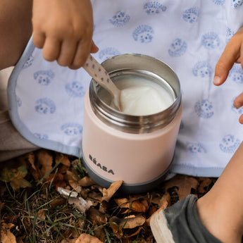 The Beaba Thermo Portion 300ml DarkMist LightPink is designed to store your baby’s meals and keep them at the desired temperature for longer periods. The container is equipped with double-walled insulation, ensuring that food stays either hot or cold, depending on your needs. The 300ml capacity is perfect for storing individual meals or snacks. The DarkMist exterior combined with the LightPink lid gives the container a modern and stylish look. The compact design makes it easy to carry, whether for daycare, travel, or at home.