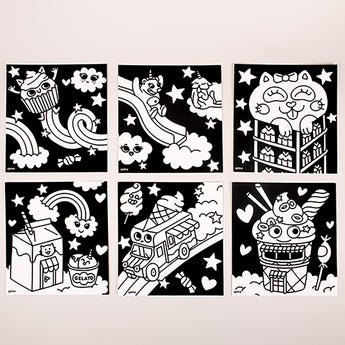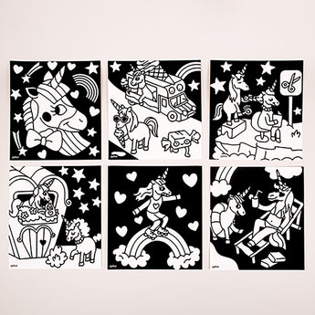 Come and discover the Kawaii universe, fun and overflowing with fantasy through these 6 velvet paintings to color! Ideal for developing dexterity and creativity.