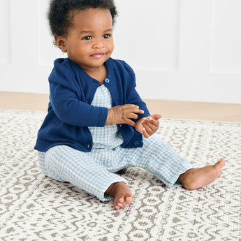 Designed to double the choices for stylish, baby-safe floor covering, our reversible playmat flips from a colorful kid-friendly pattern to a modern décor print for two looks in one. Completely PVC-free, the easy-care foam mat provides a jumbo-size cushioned play space that works equally well in the living room or playroom. Simply roll it up for convenient transport and storage.