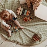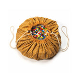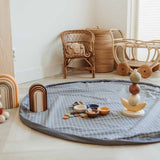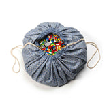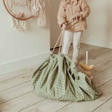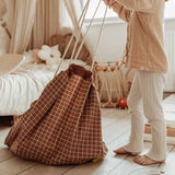 Discover the ultimate in toy storage with our Organic Toy Storage Bag in Grid Blue. Made from 100% GOTS-certified organic cotton, this stylish playmat transforms into a convenient storage bag with a simple pull of the strings. Its timeless grid pattern complements any room, making it a versatile addition to your home. Say goodbye to lost toys and hello to easy cleanup!