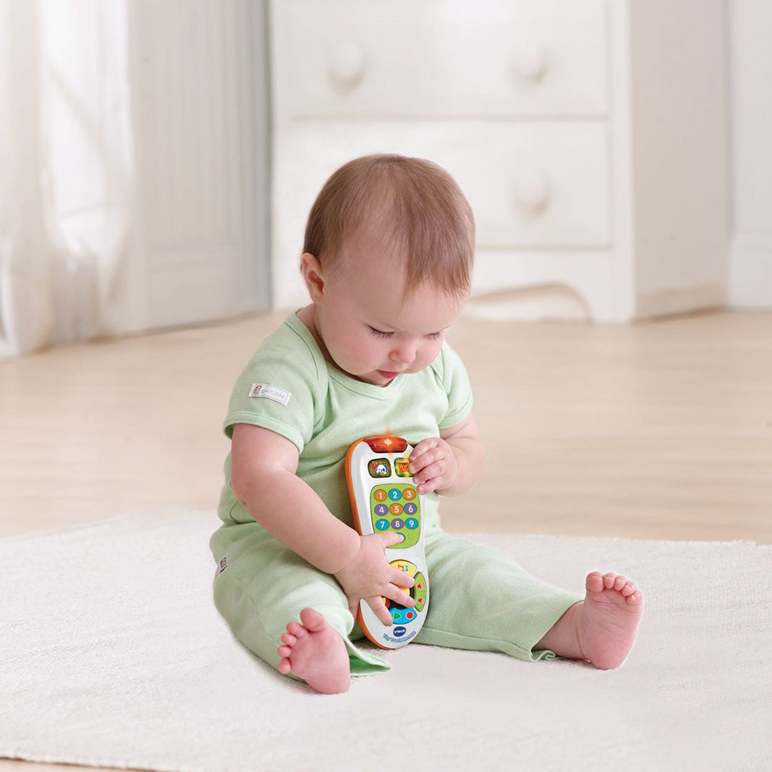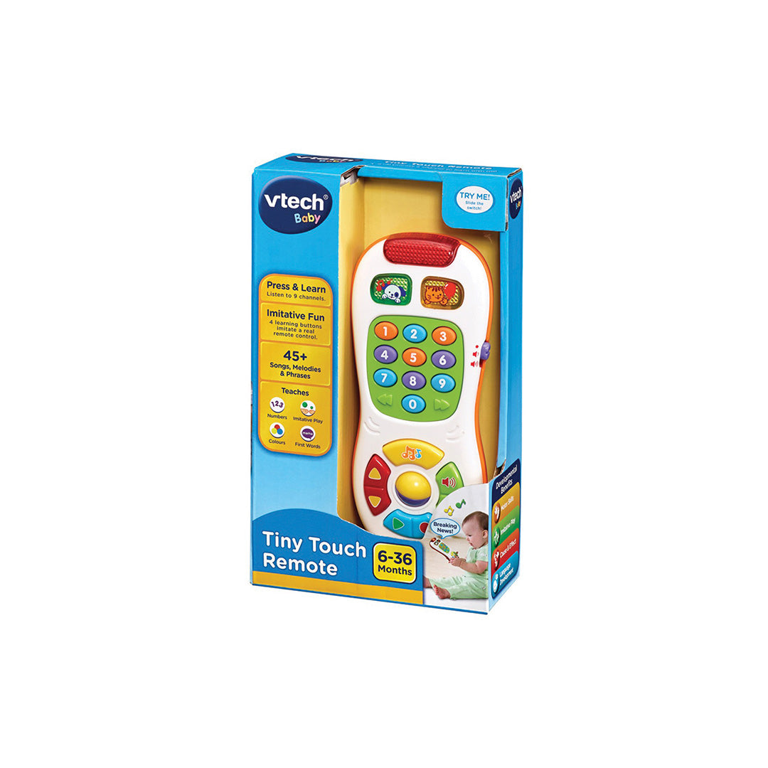 Discover the V Tech Tiny Touch Remote by VTech. Touch, roll, and learn! Your little one will have fun playing and learning with the VTech Baby Tiny Touch Remote, featuring nine brightly coloured light-up activity buttons that introduce a variety of curriculum to your baby including letters, numbers, animals, music, and more. Listen to lots of popular melodies when the music button is pressed and learn ABCs through a happy sing-along song by pressing the chunky ABC button. Take virtual picture...