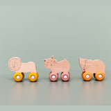 Your new favourite car toy is a friendly wooden animal on soft silicone wheels. Shaped for little hands to pick up and push along, its soft wheels are perfectly baby-safe, while the differing textures of the wood and the wheels are great for sensory exploration. Made with smooth, rounded edges, it’s the perfect friend to practice motor skills with, while fine-tuning baby’s hand-eye coordination.