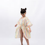 Stay effortlessly stylish and comfortable with our Confetti Girl Swimwear Cover Up. Designed with an open-front bathrobe silhouette, this versatile piece can be cinched at the waist using the adjustable front tie to complement any swimwear. Crafted from a soft 90% cotton and 10% spandex blend, it’s breathable, stretchy, and perfect for everything from beach days to poolside lounging.