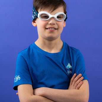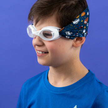 Dive into fun with the Blue Junior Swimming Goggles – Fan de Sport Model by Waterplops. Designed for young sports enthusiasts, these goggles feature a soft, wide fabric band for maximum comfort and a secure fit. The bold design showcases various sports gear, while the eco-friendly materials offer UV protection and durability. Perfect for all aquatic adventures, these goggles ensure clear vision and a snug fit, making them ideal for active kids aged 3 and up.
