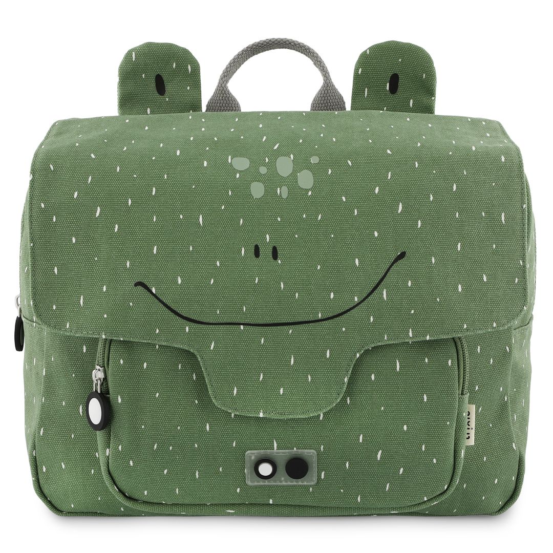Perfect for little adventurers, this cute satchel is designed for kids heading to school or on fun outings. It features adjustable, padded shoulder straps and a chest strap for a secure, comfortable fit. A handy top handle makes carrying and hanging easy. With a spacious main compartment and a front pocket, children can neatly store snacks and essentials. Both pockets have zippers that kids can open and close independently. Inside, a name tag helps keep track of their special bag. Made from water-repellent material, it’s easy to clean and built to keep belongings safe on every adventure.