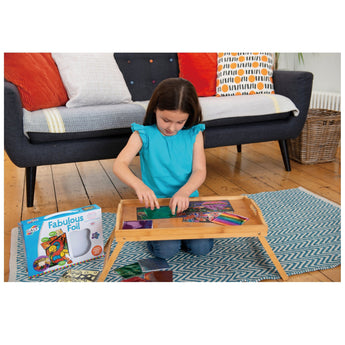 Create 12 foil pictures and 25 foil stickers with this exciting foil art kit. Simply peel off a section from your picture, place the foil over the sticky area, rub with your finger and lift up the foil sheet. The sparkly foil transfers to your picture or sticker with no glue required. Contents: 40 foil sheets in 8 assorted colours, 12 pictures, 2 sheets of 25 stickers, guide. 6 years and onwards