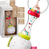 Thanks to the ergonomic shape of the handle, the rattle is easy to grasp and to handle.