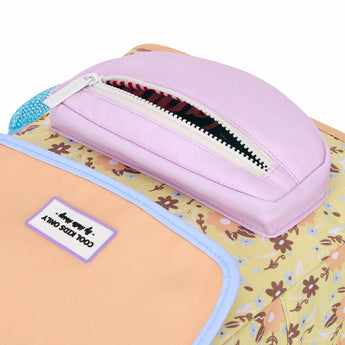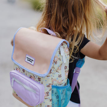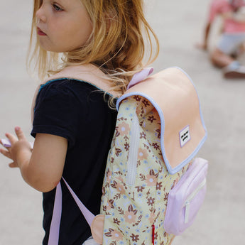 Our Pastel Blossom Schoolbag for children is loved by little girls everywhere! Pattern: Flowers. Colorful schoolbag, square shape, water bottle pocket, inside pocket, waterproof fabric, the ultimate backpack! Pair with our children's cap with the same name and pattern.
