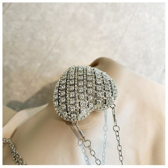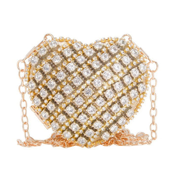 A gold crystal heart clutch that sparkles from every angle—perfect for events and Eid outfits.