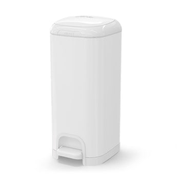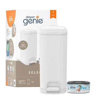 Introducing the new Diaper Genie Select Bin, a sleek addition to your nursery designed with both style and durability in mind. Crafted from durable stainless steel, the new Diaper Genie Select bin features a Push N Lock odour locking clamp that effectively helps to contain odours of messy nappies. For added convenience, the Select nappy disposal system features a 52.1 cm height and a wide opening, along with a foot pedal for easy, one-handed operation Our new metal nappy bin can hold up to 40 newborn diapers and comes with a multi-layer octagonal refill film, featuring our advanced Max Odour Lock technology. The XL octagonol refill can securely hold up to 810 newborn diapers, offering extended usability. The Diaper Genie Select is available in 3 colours : Lily White, Stone Grey and Sage Green.