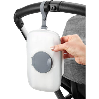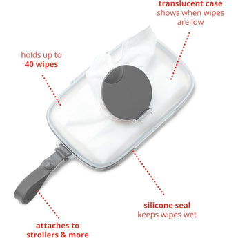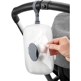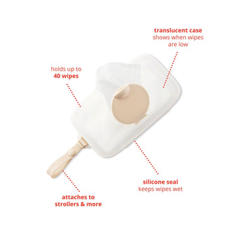 With a secure, wide opening and a moisture-stay seal, our baby wipes case is the answer to fresh wipes every time. Whether you drop it in your diaper bag or use the built-in strap to hang it on your stroller, it's the perfect, go-anywhere solution.