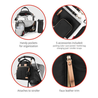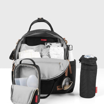 We’ve given the standard diaper bag an upgrade by packing it with a complete range of coordinating accessories. Featuring lightweight, wipe-clean fabric and luxe details, our bag will make you feel effortlessly pulled-together—and fully equipped—for any moment that comes your way. Choose from three different diaper bags in the Suite by Skip Hop collection—Backpack, Tote or Satchel.