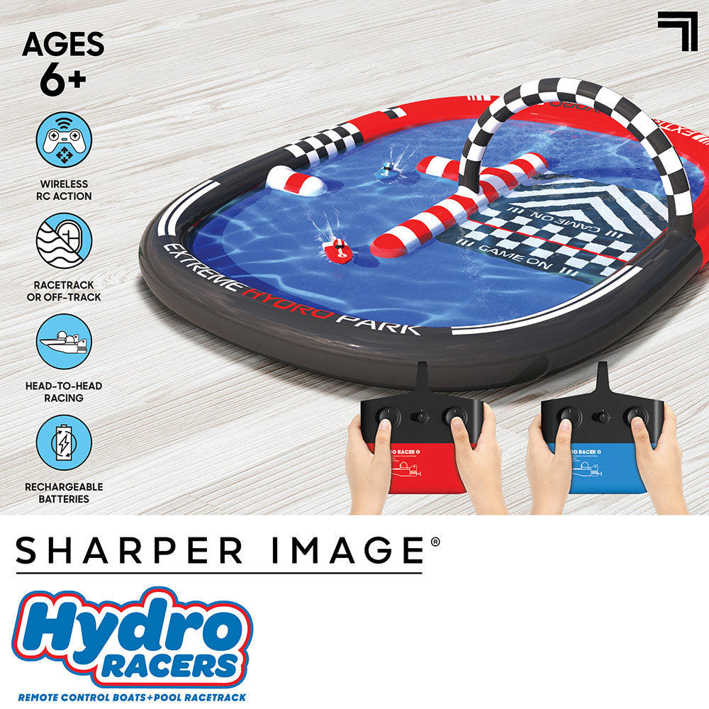 Experience the rush of hydro racing like never before with our Sharper Image Remote Control Hydro Park Racers With Pool. The ultimate blend of high-performance racing and aquatic excitement. This innovative set combines precision control, thrilling competition, and unbeatable durability to create an aquatic adventure like no other. Take the waves experience with 2 high-performance Hydro Racer and prepare for heart pounding adventures. These Hydro Racers are built for one thing – speed! Feel the adrenaline as you zoom through straightaways and expertly navigate the sharpest turns. The fun knows no bounds! Take your Hydro Racers anywhere you like, whether it's in your backyard pool, a nearby lake, or even indoors in a spacious tub. Rain or shine, these racers are always ready for action, making them the perfect companions for aquatic excitement.