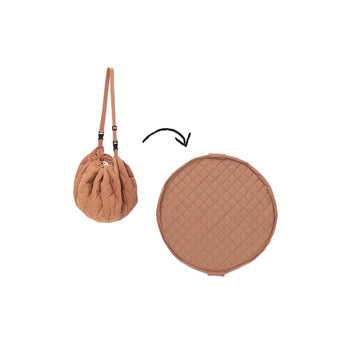 Discover the Fleuri Organic Soft Baby Play Mat and Storage Bag, a versatile 3-in-1 solution for modern parents. Crafted from 100% GOTS organic cotton, this Tawny Brown play mat offers a calming, earthy tone that complements any nursery. With a 120 cm diameter, it doubles as a storage and diaper bag, featuring an adjustable shoulder strap for easy transport. Enjoy the perfect blend of functionality and style with this eco-friendly, padded play mat.