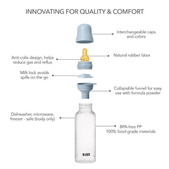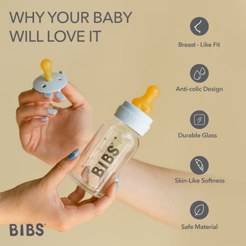 BIBS Glass Baby Bottle Round Latex 1 pack 120 ml Slow Flow Baby Blue