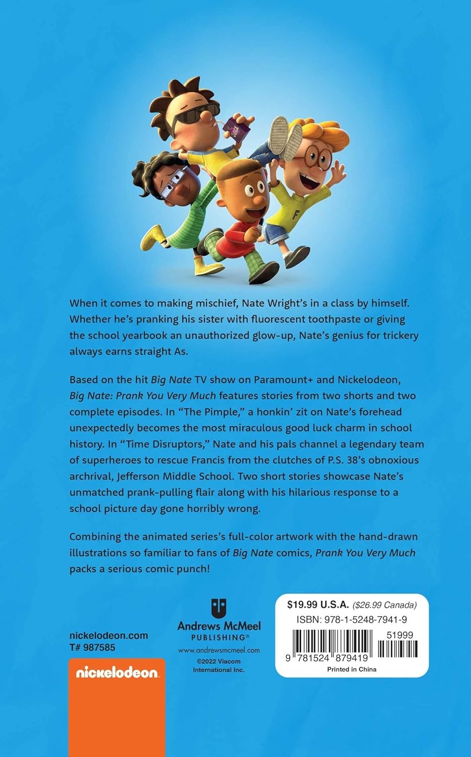 Nate's back with more pranks! Big Nate: Prank You Very Much Volume 2 is a dynamic graphic novel based on the animated series. Starring Nate, Francis, Dee Dee, and Teddy in hilarious escapades, this Andrews McMeel book is perfect for fans new and old. Ages 9-12.