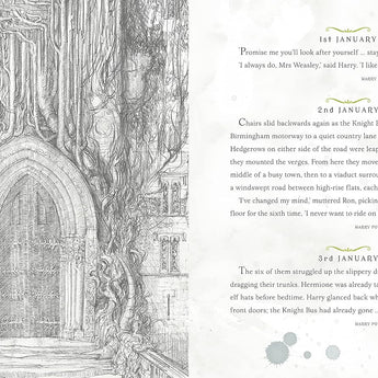 This is an irresistible gift book for anyone who has ever been captivated by the Boy Who Lived. Each day features a favourite anniversary or meaningful memory from the Harry Potter novels. All around, Jim Kay's scenic artwork and decorative painter's marks bring that moment to life in breathtaking detail. His unique interpretation is both captivating and transporting - picture frozen icicles glinting on the snowy towers of Hogwarts, the dancing eyes of Professor Albus Dumbledore, or the infectious hustle and bustle of Diagon Alley. Inside, a selection of his most iconic illustrations are joined by previously unseen pencil sketches and preparatory pieces, offering a unique and fascinating insight into the artist's sketchbook.