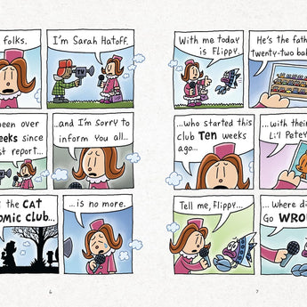 Excitement grips the Cat Kid Comic Club as Li'l Petey, Flippy and Molly inspire twenty-one baby frog siblings to continue making authentic and unique comics. Will Naomi and Melvin keep up their antics, or will they finally decide to straighten up and fly right? Will the creativity continue? Will the drama diminish? Find out in the next Cat Kid Comic Club!