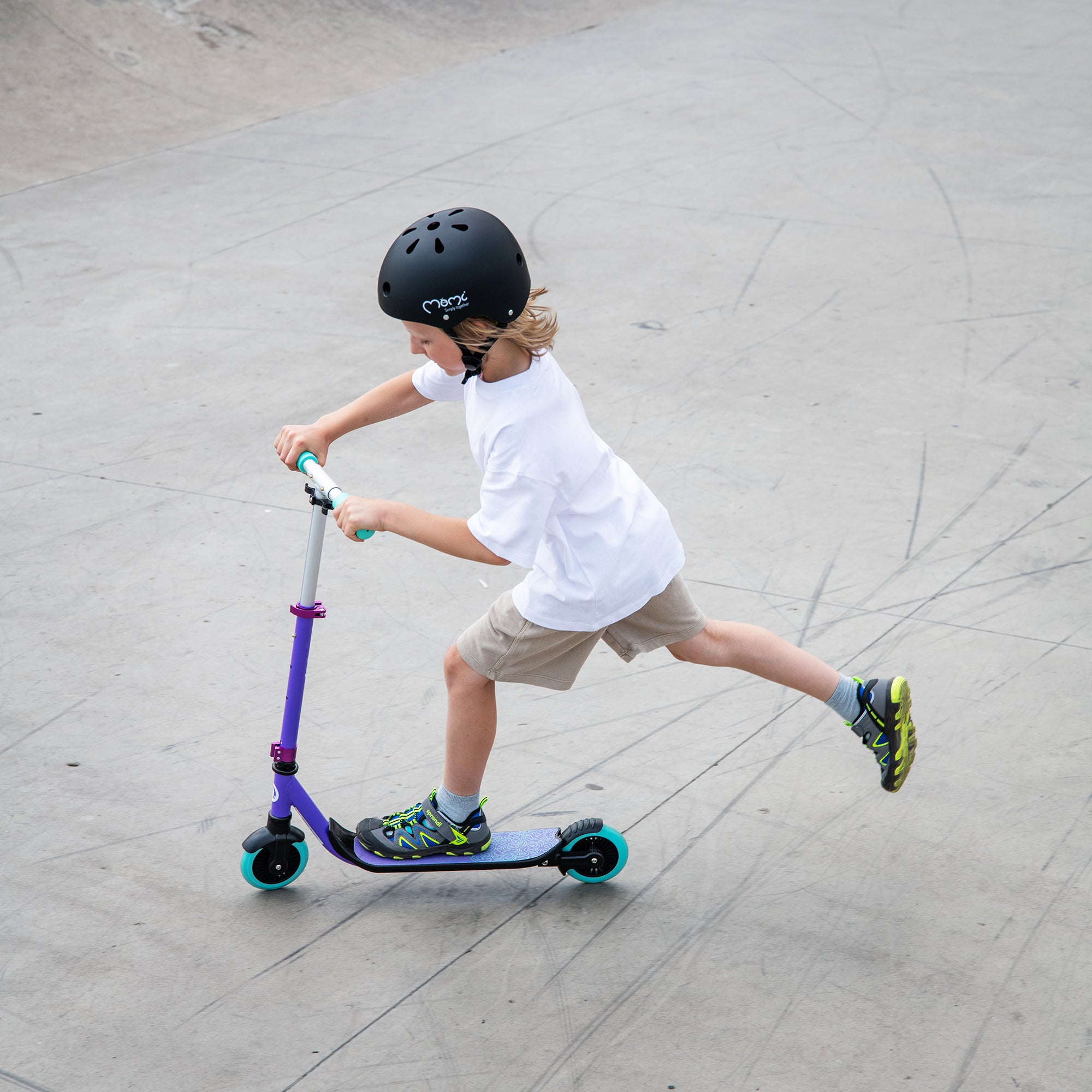 Zoom into fun with the Momi Qkids Bro Scooter – the perfect first scooter for kids aged 3+. Momi designed this lightweight, sturdy scooter with a 360° rotating handlebar and adjustable height for growing riders. Smooth, stable rides help build balance and confidence for everyday outdoor adventures.