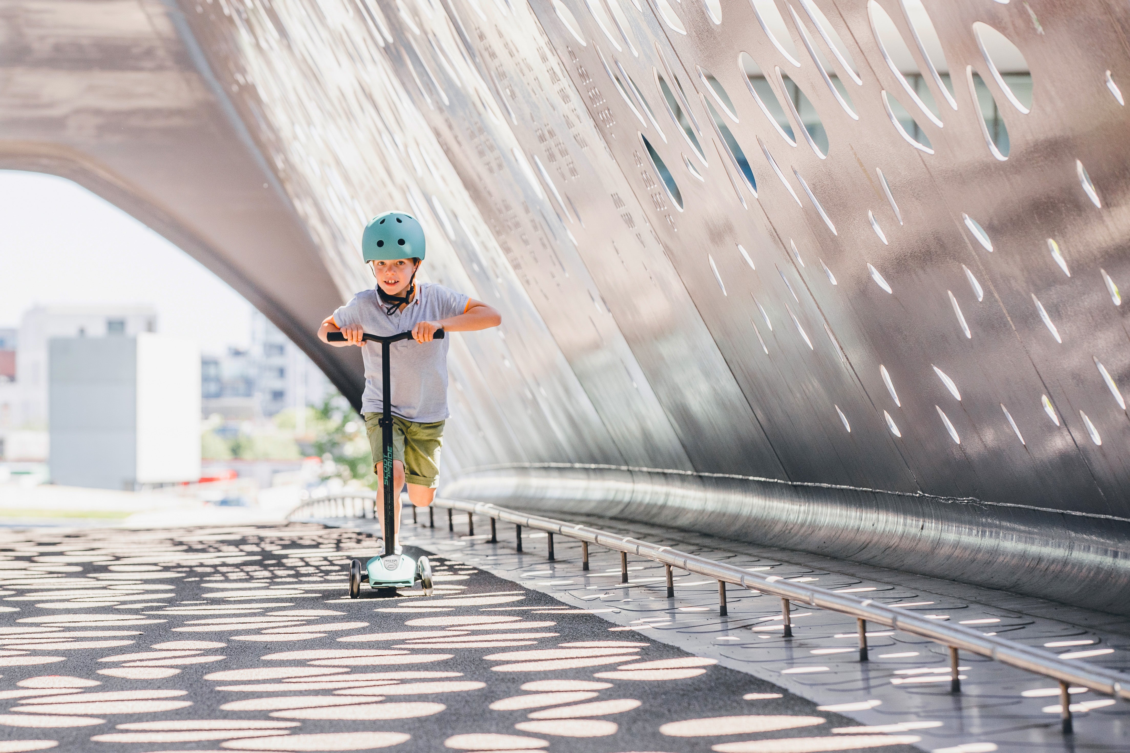 The ultimate kickboard for kids and adults! The Scoot & Ride Highwaykick 5 LED features high-grip, shock-absorbing jumbo wheels with white LED lights, durable sandwich construction supporting up to 80kg payload. Adjustable handlebar height for growing riders.