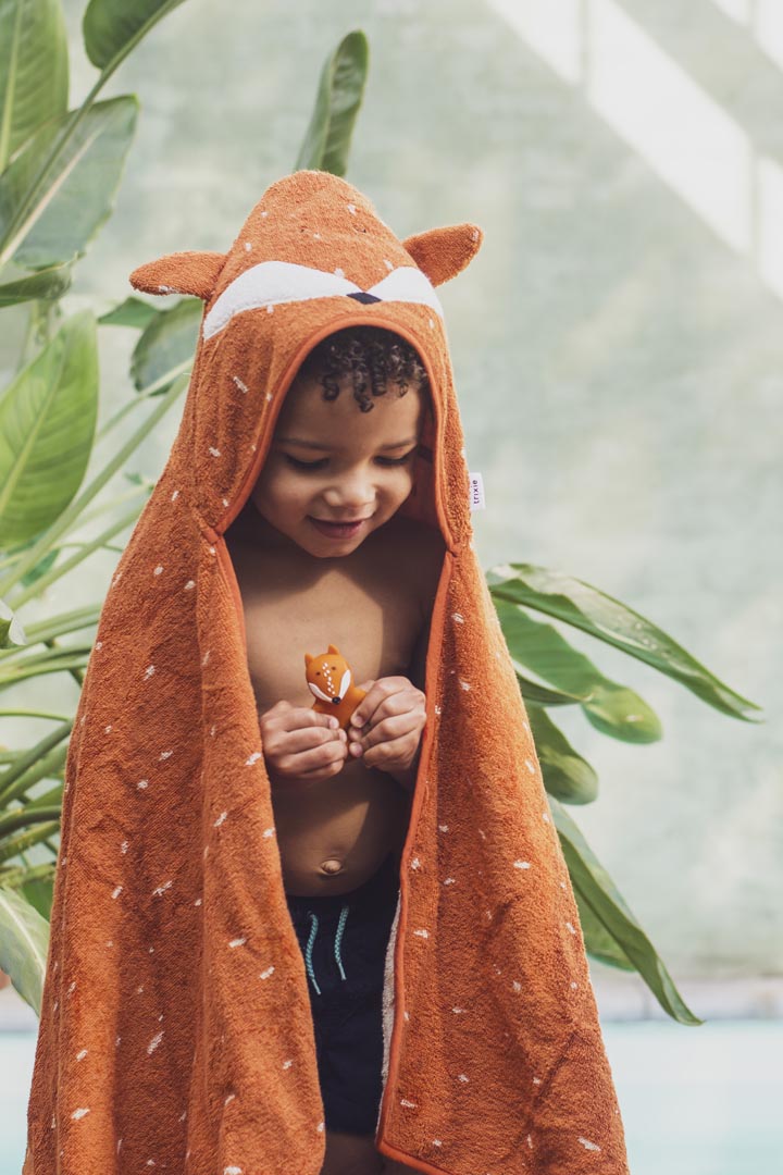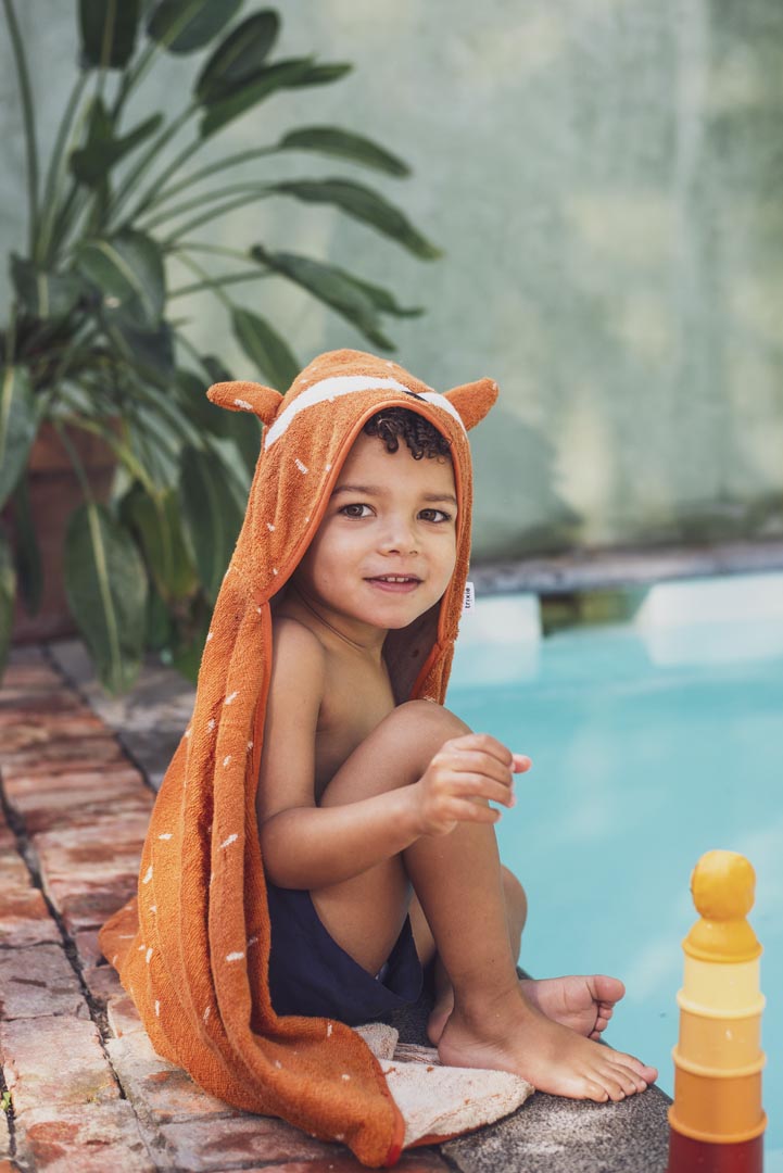 Wrap your little one in cosy comfort with the Trixie Kids Hooded Towel in soft organic cotton. Fun animal hoods keep children cosy, absorbent and gentle on sensitive skin. The generous 70x130cm size is easy to wrap and perfect for cuddles, drying and playtime.