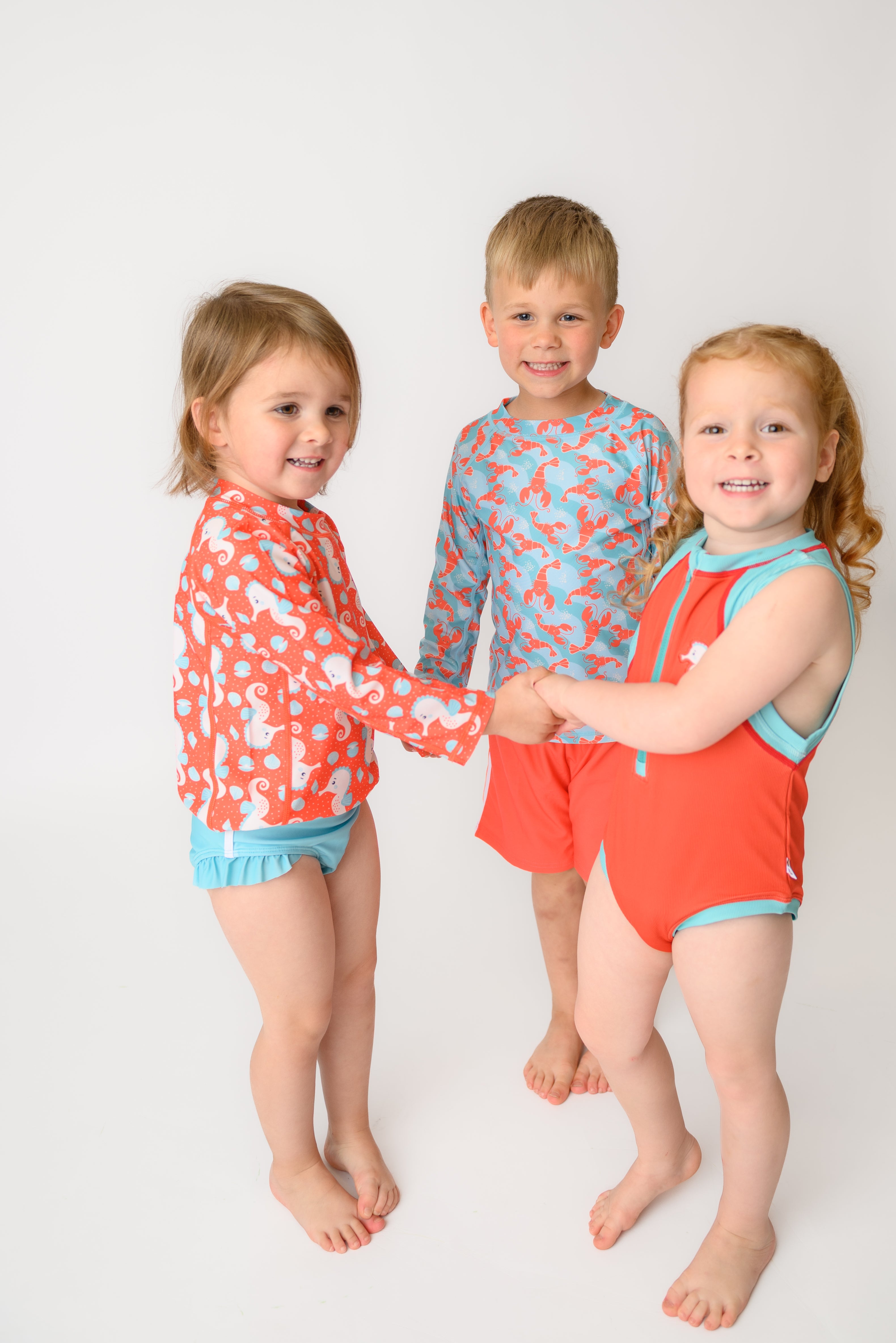 • Long-sleeve rash guard + coordinating swim trunks