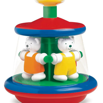 A gentle push on the top makes the teddies spin, helping children explore cause-and-effect, hand-eye coordination, and sensory development through interactive fun.