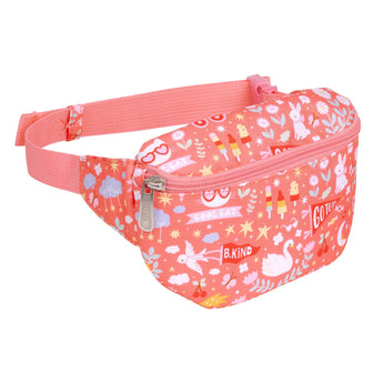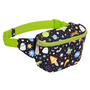 Kids size design bum bag with adjustable strap that can also be used as a crossbody bag. A purse/ wallet and mobile phone fitswith ease in the front compartment and there is an additional zipped back pocket which is ideal for small valuables.