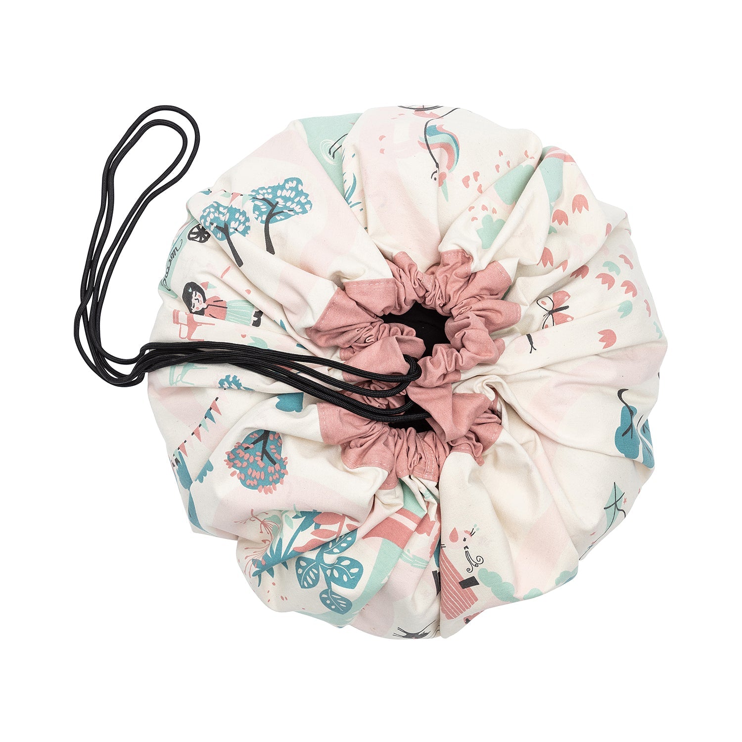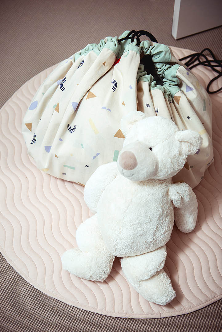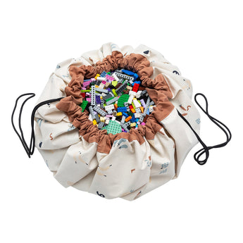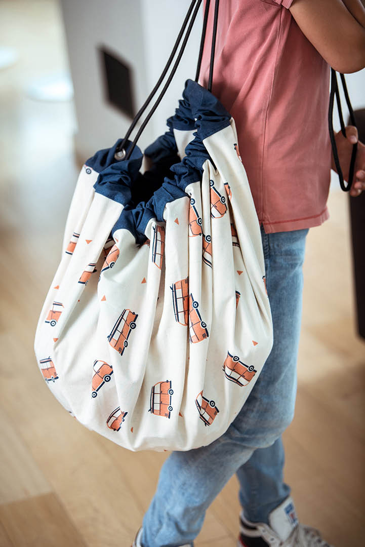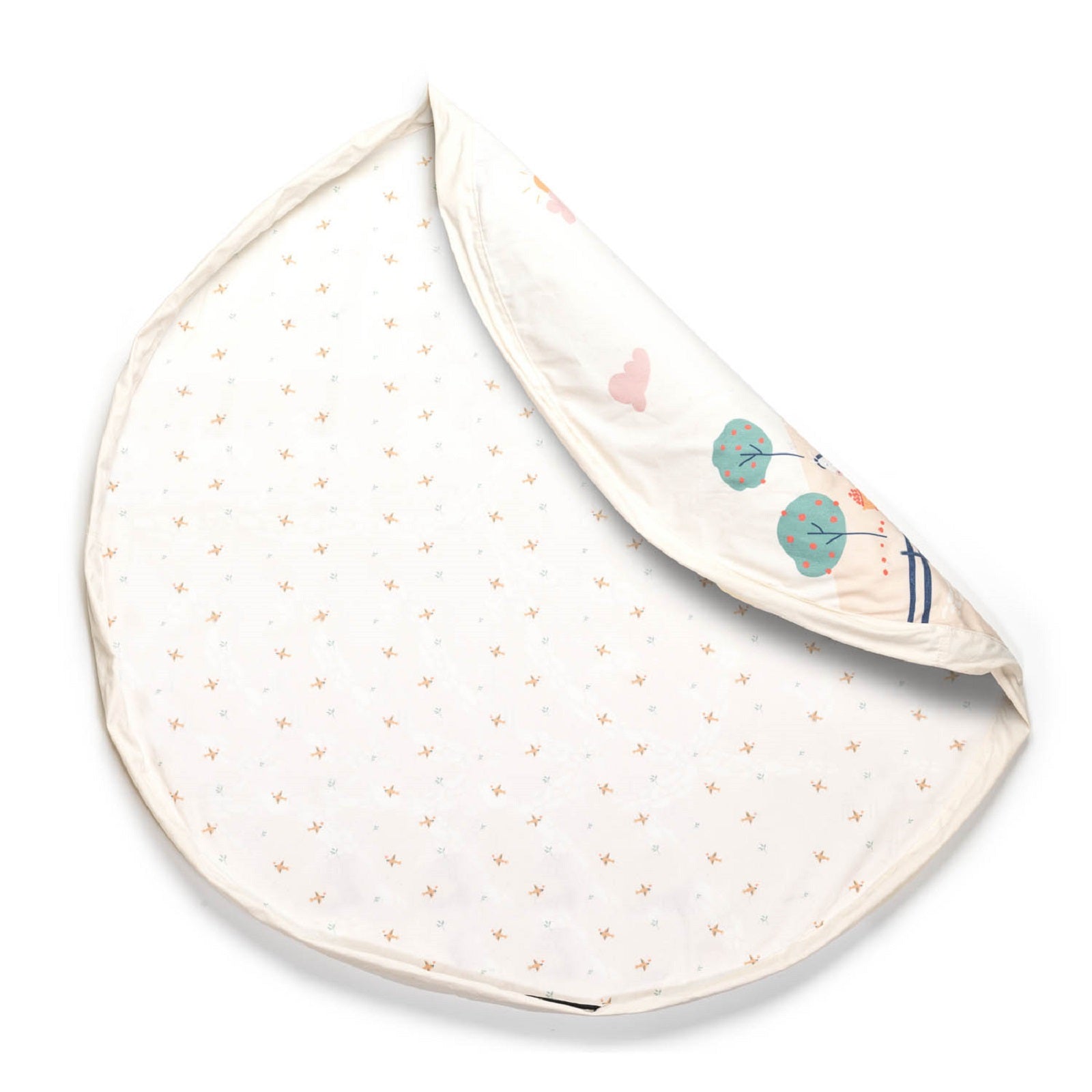 A 2-in-1 toy storage bag and play mat for kids and toddlers. Perfect for families who want quick cleanup and a fun, roomy play space. Open for instant play, pull the strings to tidy in seconds. Durable, safe, and easy to carry for home or on-the-go. Every purchase helps plant a tree.