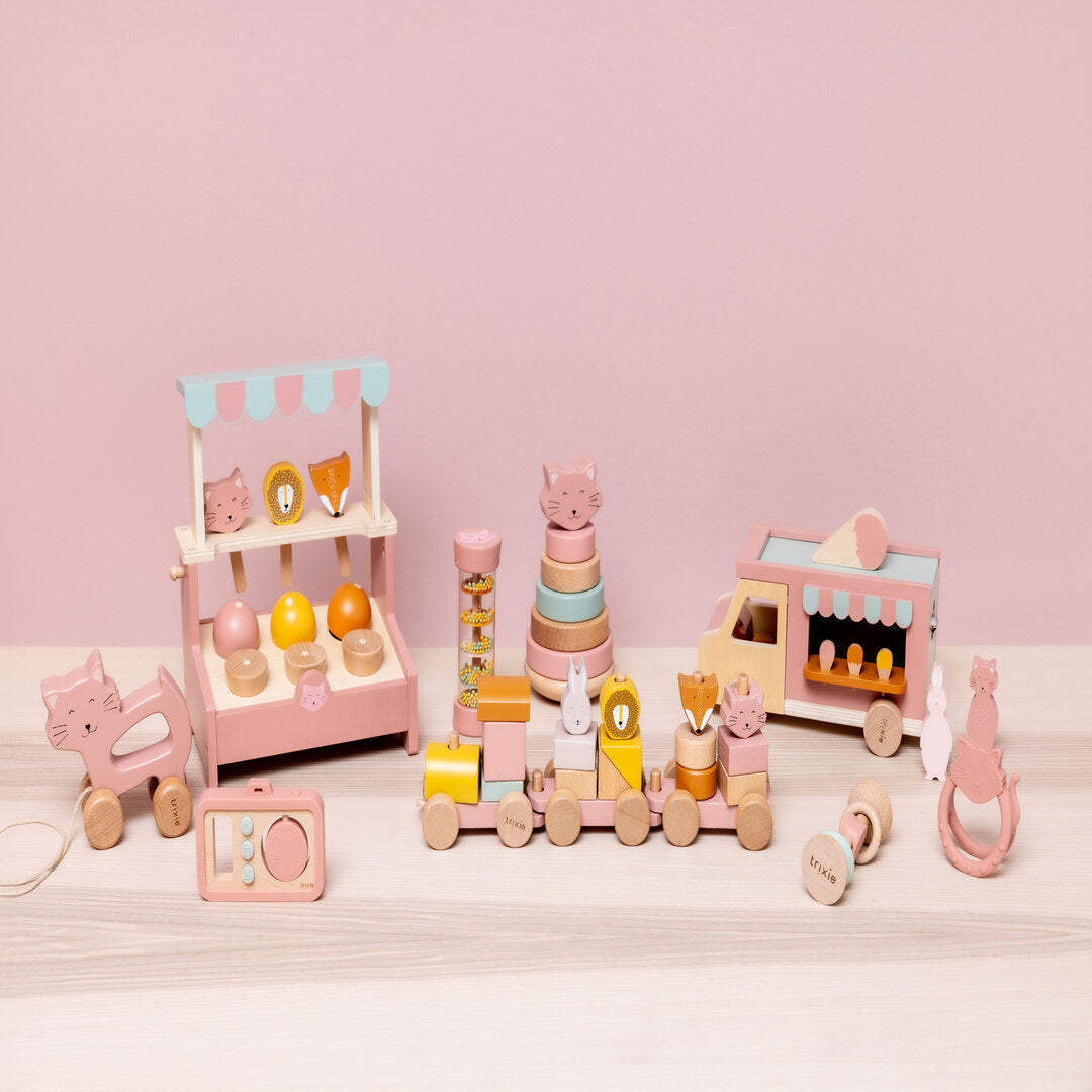 Quick, catch the ice cream truck! Listen out for the bell and line up with animal friends – Mr. Lion is ready to serve delicious ice creams when you pop a coin in the slot. Made from FSC-certified wood, this Trixie toy is perfect for sparking imagination and developing fine motor skills from 3+ years.