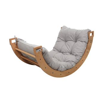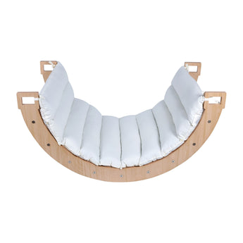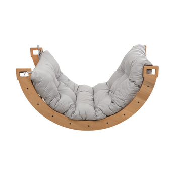 The Larisa and Pumpkin Large Rocker and/or Climbing Arch, with its additional cushion, will help your little one play and imagine. It supports the development of your child’s confidence, balance, and strength skills. When flipped over, it allows your child to have a pleasant and safe time both alone and with you while resting.