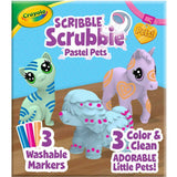 • SCRIBBLE SCRUBBIE PASTEL PET SET – Includes 3 adorable pastel pets, 3 washable markers, and a scrub brush for endless coloring fun