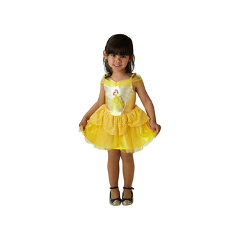 Transform into the enchanting Belle with Rubies' Disney Beauty and the Beast Princess Ballerina Costume. This officially licensed golden dress captures the magic and glamour of Belle's iconic look, perfect for your little princess to twirl and dance in. Ideal for costume parties, dance recitals, or imaginative play, this dress will make your child feel like the star of the ballroom.