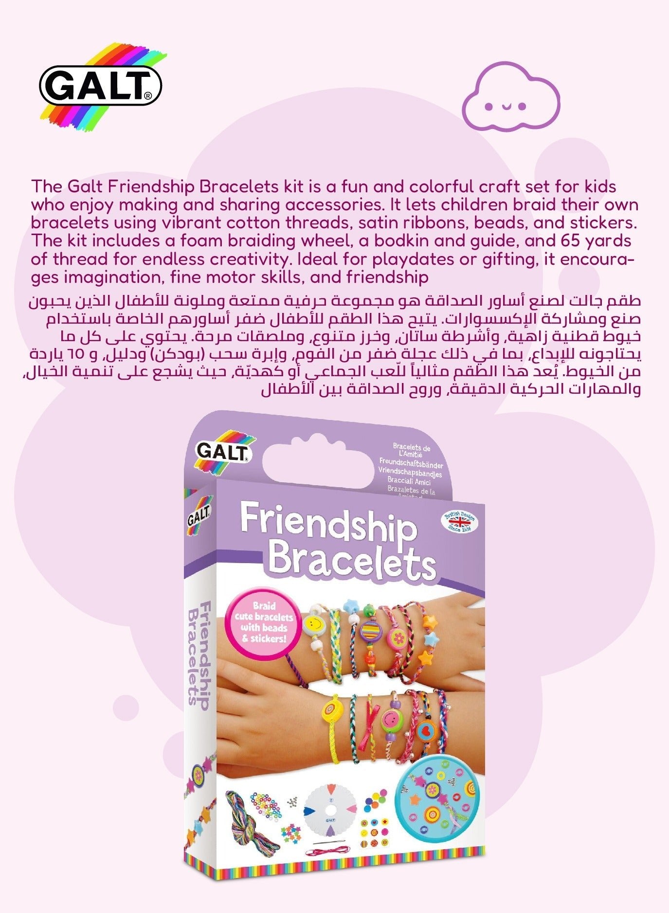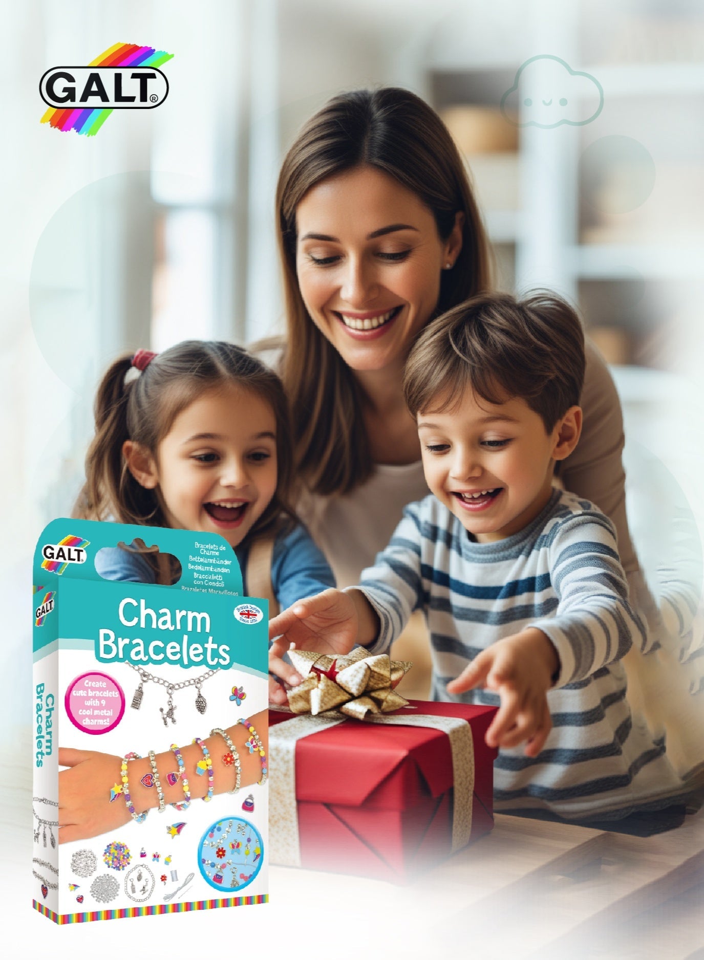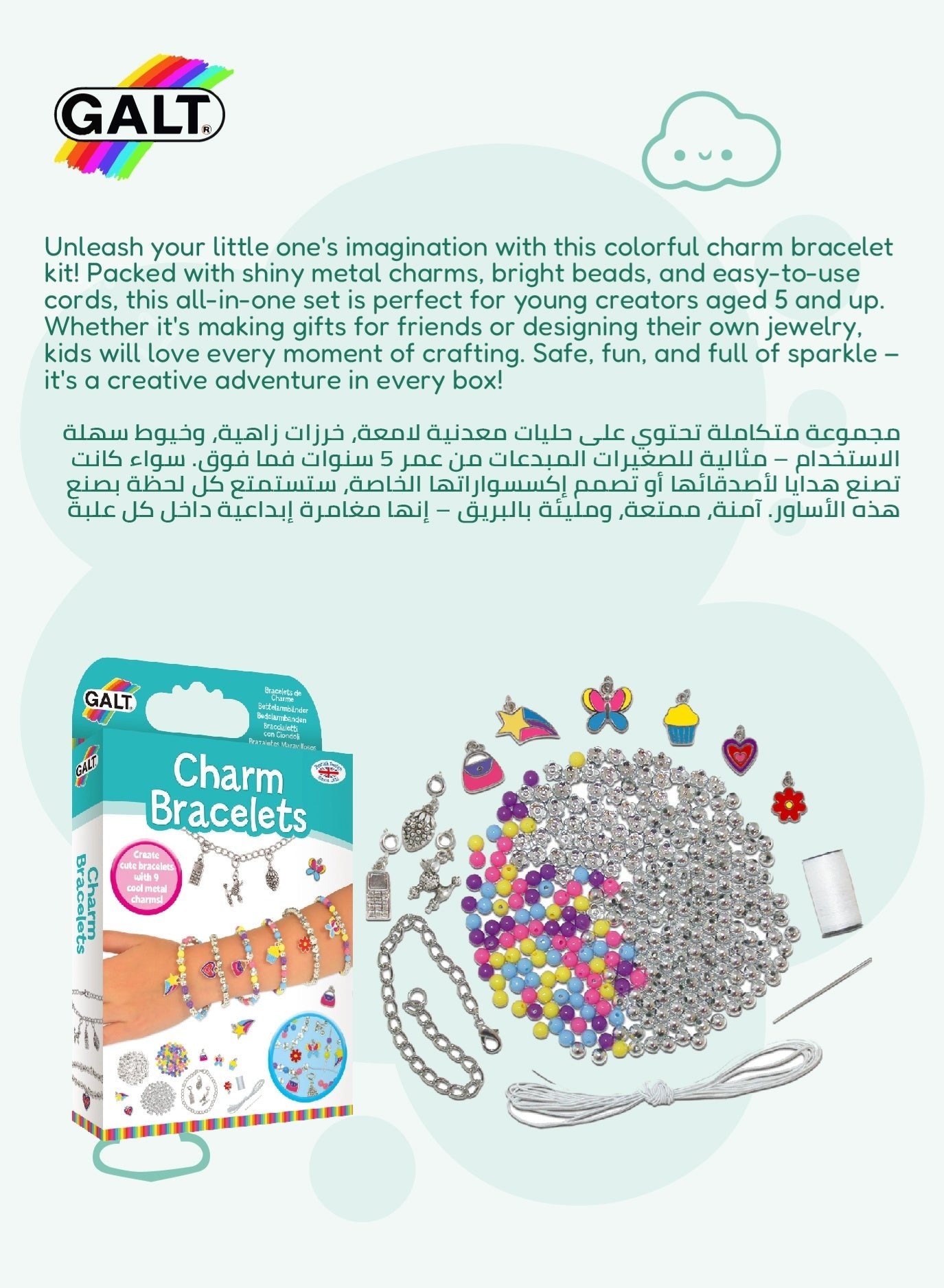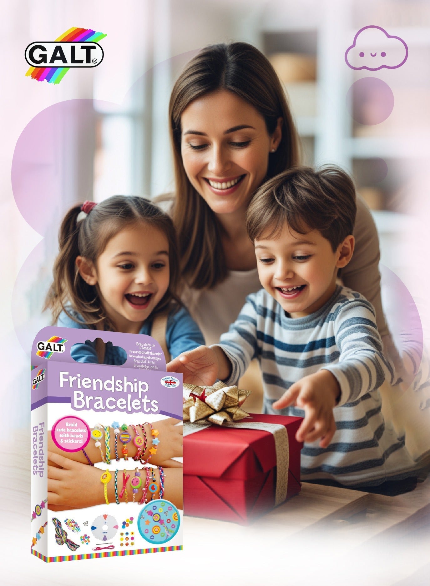 Create sparkly accessories with the Galt Handmade Kids Friendship Charm Bracelet Kit. Galt Toys designed this jewellery craft kit for ages 5+ with fun beads, cords and stickers for making colourful friendship bracelets. This Galt kit boosts creativity, fine motor skills and confidence – perfect for playdates, gifts and screen-free fun.