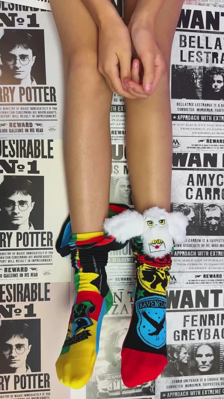 Embrace the magic of Hogwarts with our vibrant Hogwarts & Hedwig Socks! Showcasing the iconic crests of Gryffindor, Slytherin, Ravenclaw, and Hufflepuff, these bold, mismatched socks are pure magic. Featuring a custom hoodie on one sock and a plush Hedwig owl on the other, they’re the perfect magical accessory for every fan!