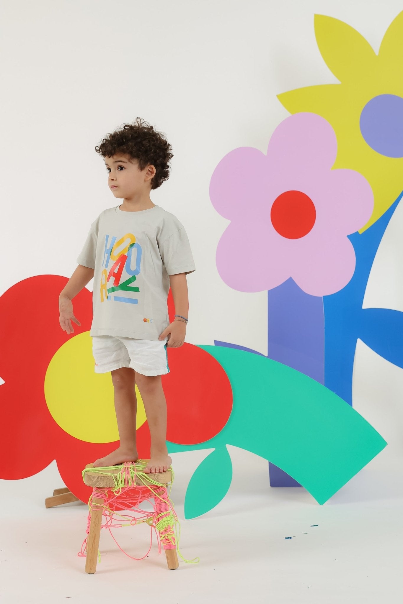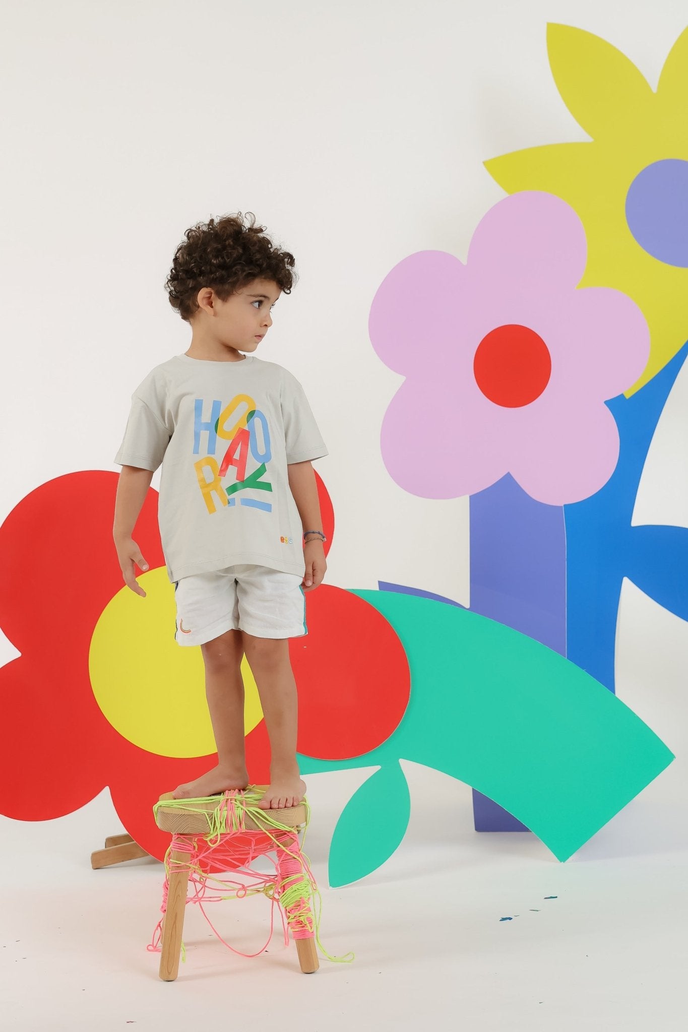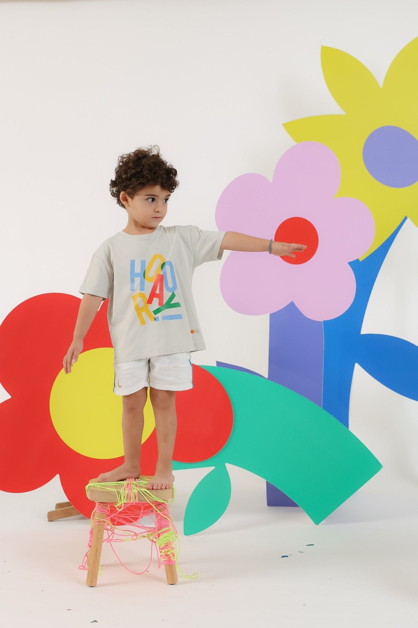 Hooray style! The Eat The Cake Boys Grey Hooray T-shirt features a cheerful Hooray print on comfortable grey fabric. Eat The Cake created this positive top for boys who love upbeat fashion. This T-shirt brings celebratory energy and joy to everyday style with comfortable grey quality.
