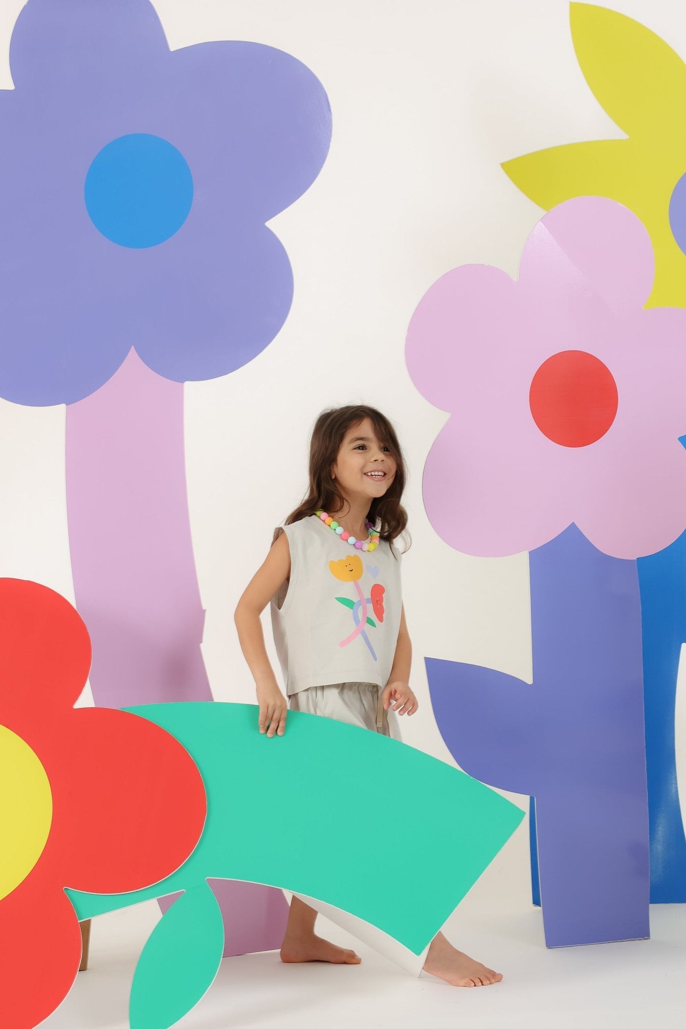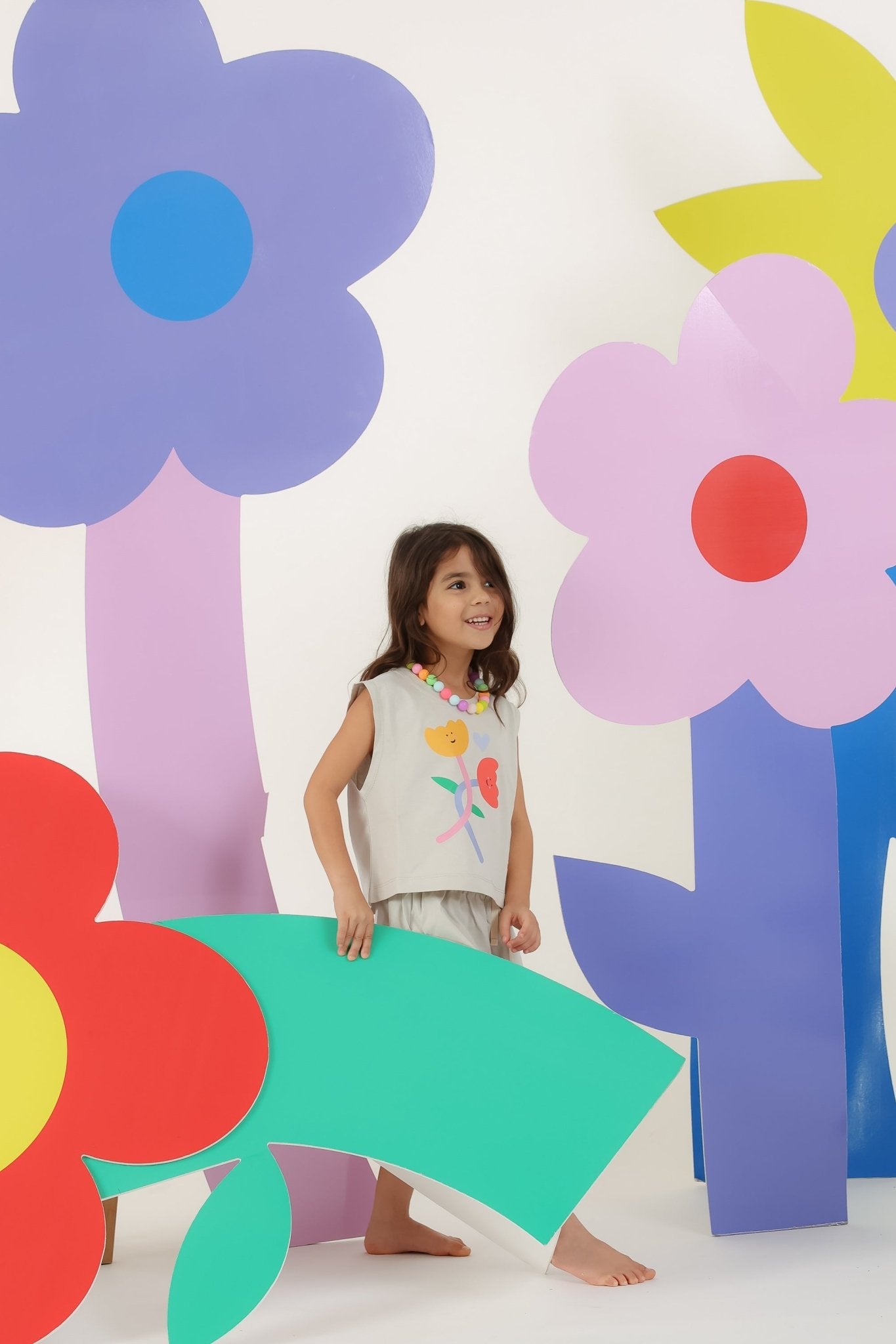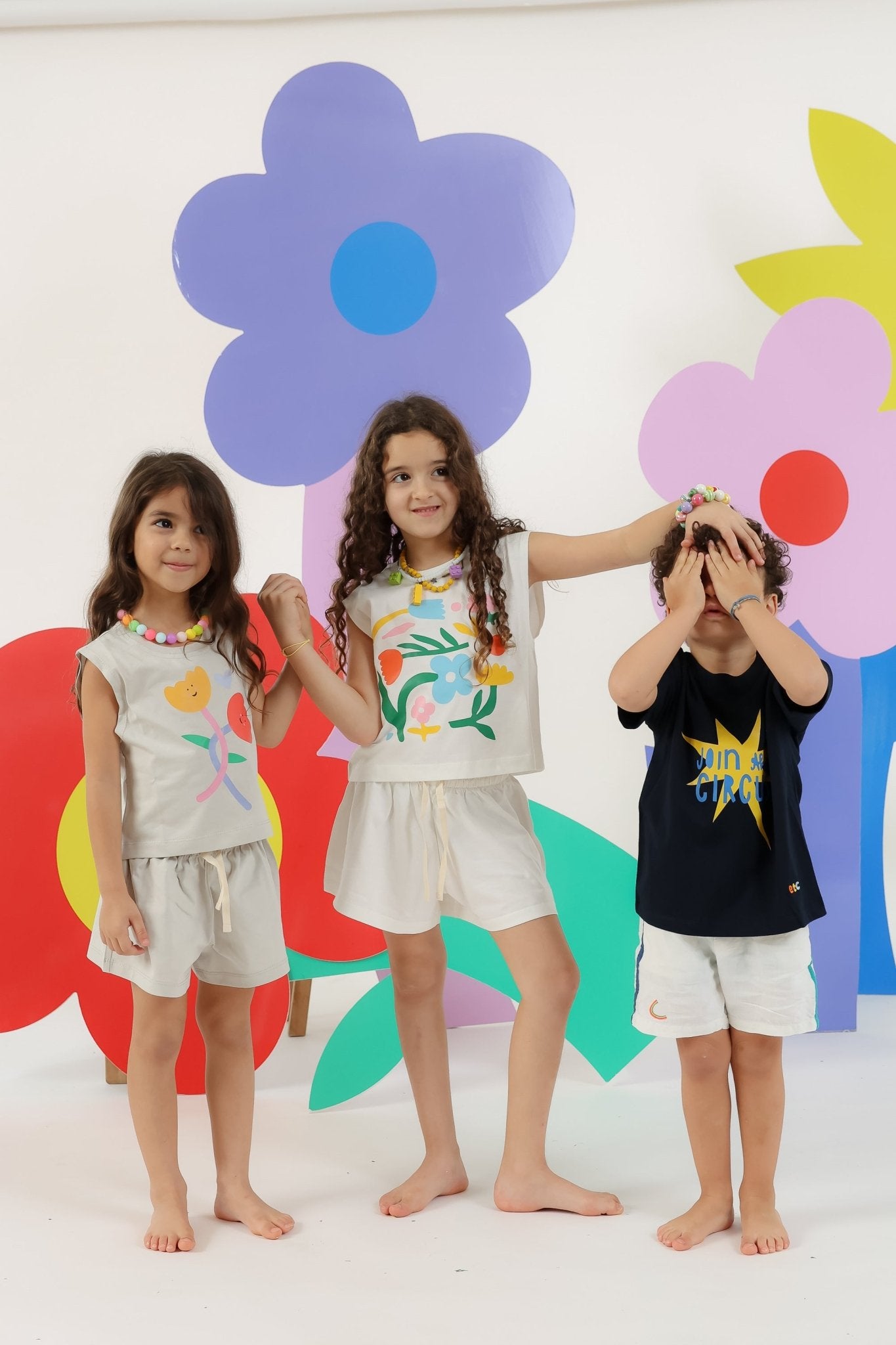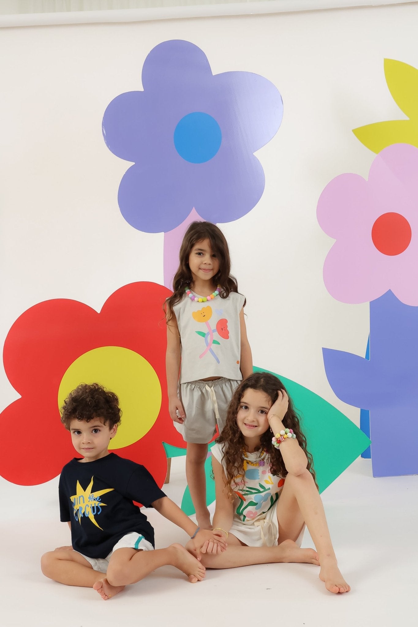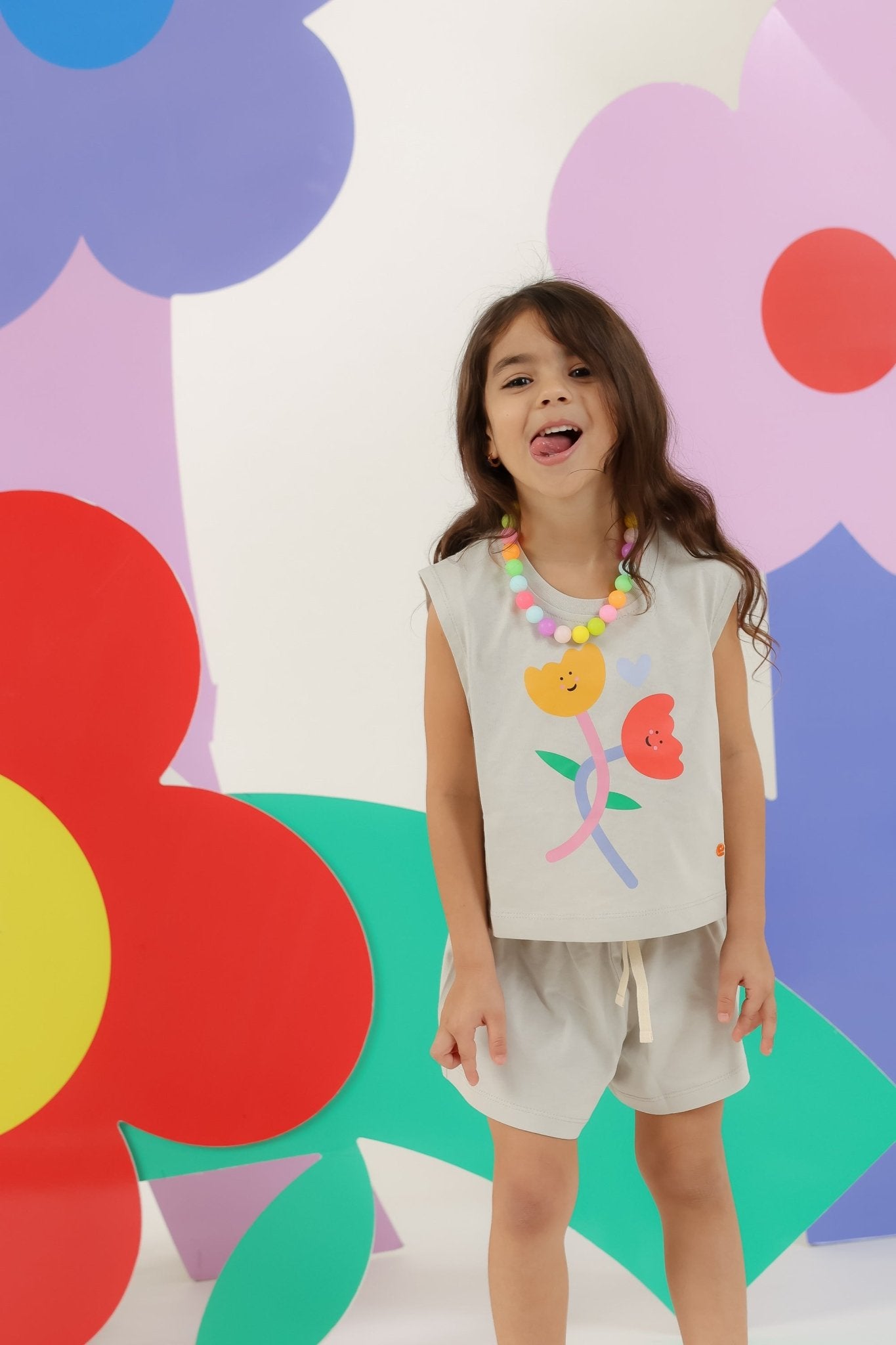Tulip style! The Eat The Cake Girls Tulip Grey Shorts and T-shirt Set features a charming tulip design in cool grey tones. Eat The Cake designed this comfortable matching set for stylish everyday wear. This set brings floral tulip charm with comfortable quality fabric girls love wearing all day.