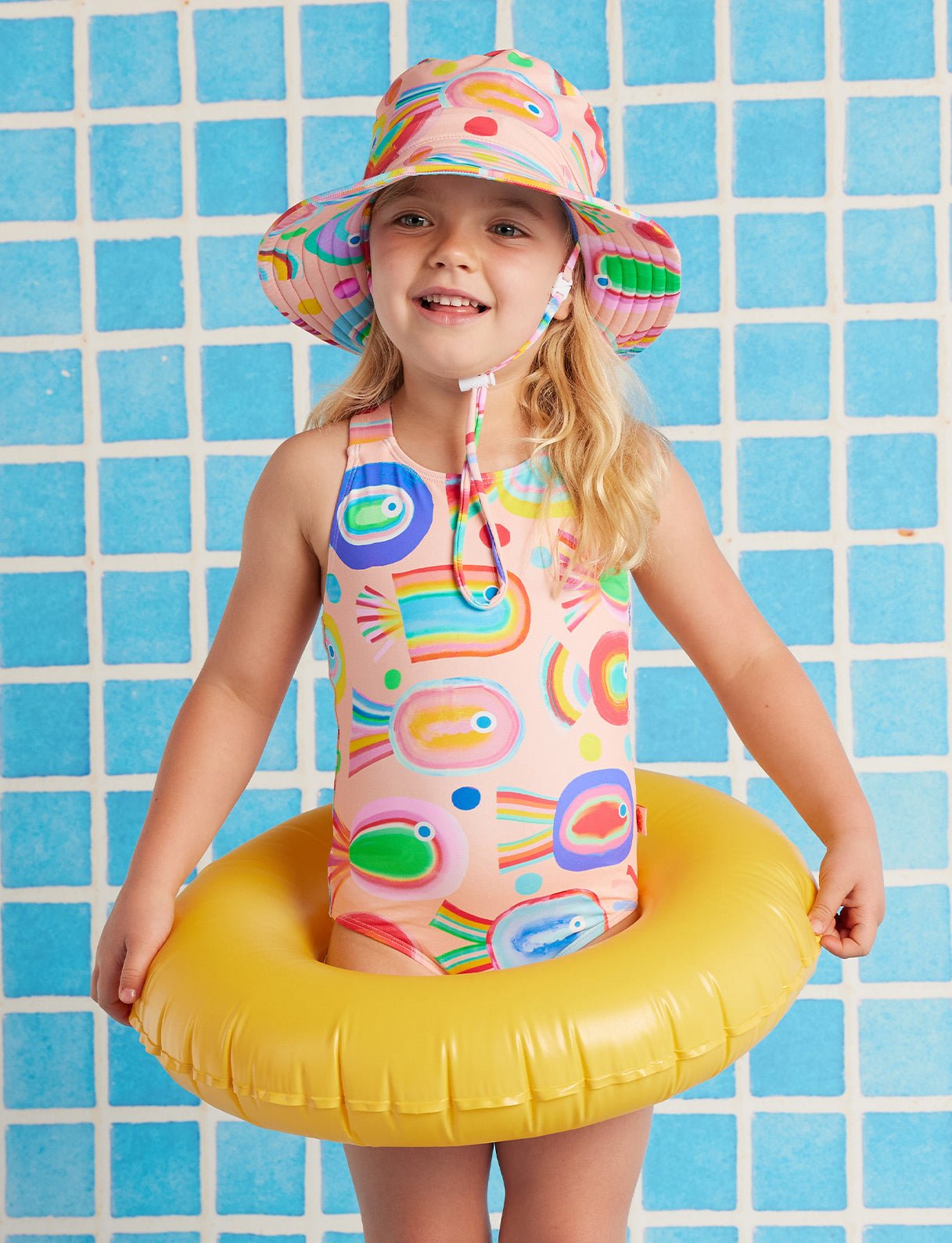 Fun fins for pool days! The Fancy Fins Girls Elastic Strap Bather by Halcyon Nights features a playful, colourful print for swim-loving girls. Halcyon Nights designed this comfortable swimsuit with elastic straps for easy wear. This Halcyon Nights bather is a bright, cheerful choice for pool, beach and holiday adventures.