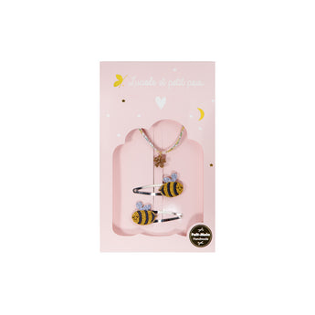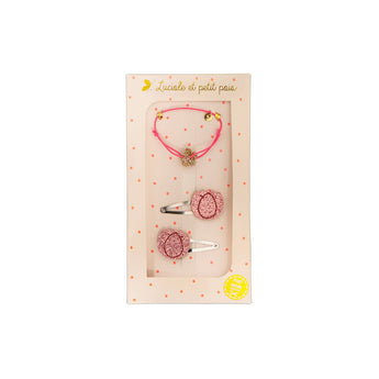 Delight in a curated gift set featuring charming hair accessories and elegant bracelets. Handmade with care, this collection combines timeless charm with vibrant elegance. Perfect for gifting or personal indulgence, each piece reflects quality craftsmanship from Vietnam, offering a harmonious blend of color, texture, and design to elevate any style.