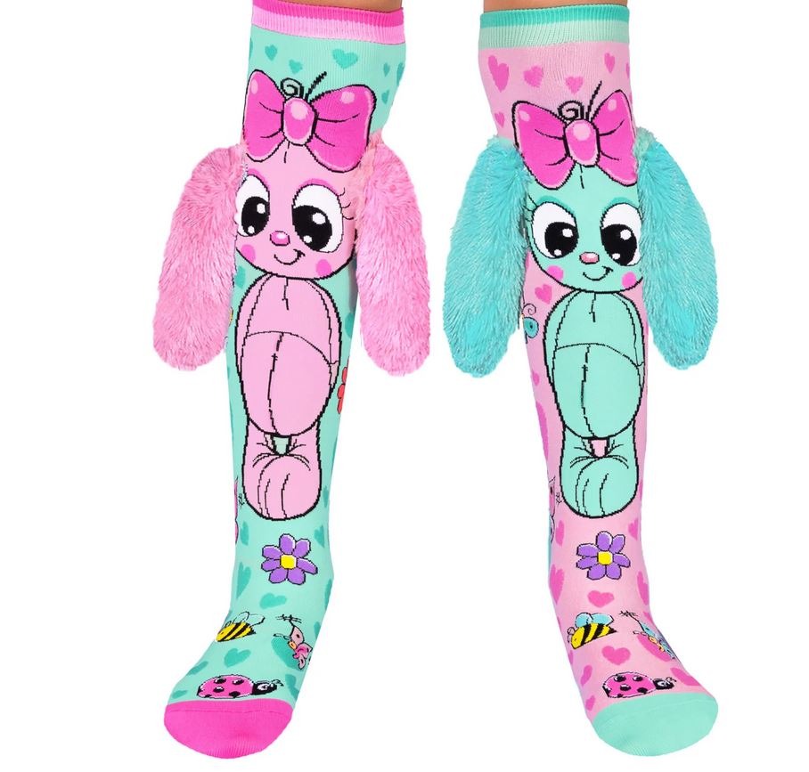 Hop into a world of fun and play with our super cute Bunny Socks with custom-made fluffy ears. Put on a pair of our fun Bunny Socks and let the fun begin! These novelty socks are perfect for crazy sock day, special occasions, birthdays, and adding joy to your day with every step you take. MADMIA socks are made with high-quality materials and are soft, comfortable and designed to last. Comes in kids and adult sizes.