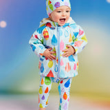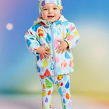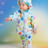 Dance in the rain! Embrace the wet weather with this cosy and colourful hooded raincoat for babies and kids!