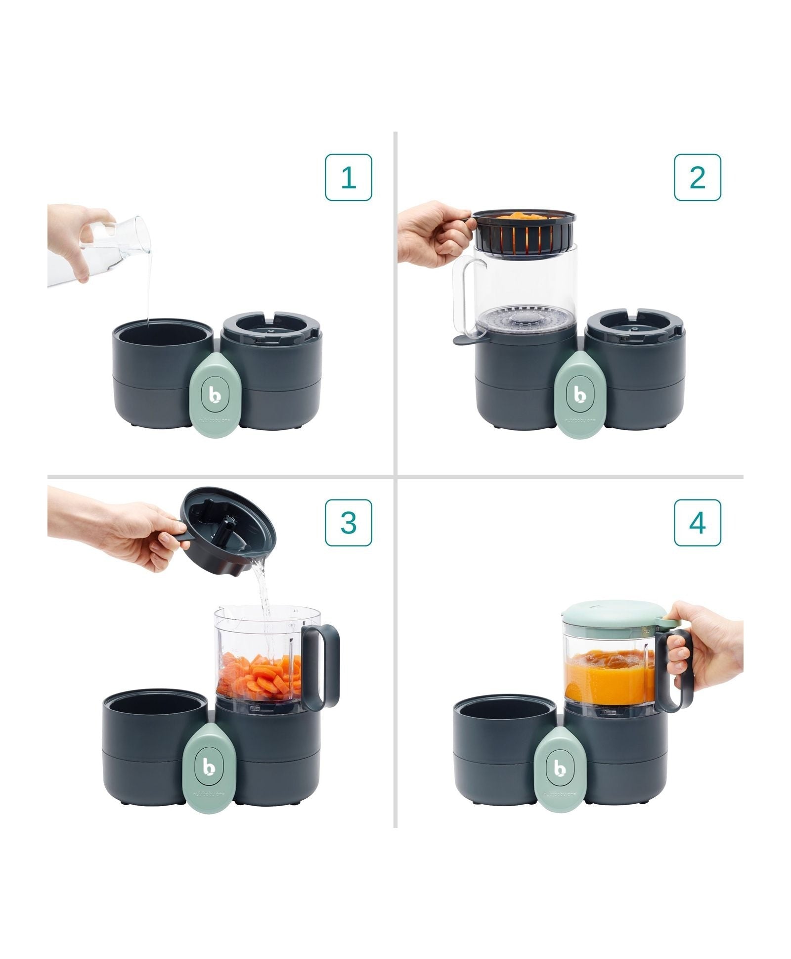 Discover the Babymoov Nutribaby Food Processor 4-in-1 by Babymoov. The large capacity insulated container for travel with baby. The acceptance of new foods, tastes and textures is an important phase in the development of the child from the age of 4 months. As young parents who are starting to diversify, awakening to taste is often at the heart of your concerns. And because each step is important, using age-appropriate cutlery and crockery greatly facilitates this new discovery! Babymoov, ...