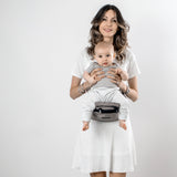 The ergonomic design of our innovative baby hip seat carrier ensures that your baby’s hips are always in the optimal “M” sitting position, with knees even at hip level. Parents' are kept comfortable, too, thanks to wide waistband providing full lumbar support. Offers 6 different carry options, multiple safety features and extra storage space for yours and your baby's essentials.