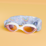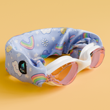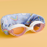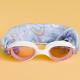 Introduce your child to a magical swimming experience with Waterplops' White Junior Swimming Goggles featuring a Violet Unicorns band. Designed for maximum comfort, these goggles eliminate hair pulling with their ultra-soft, eco-friendly band made from recycled materials. The light pink tinted lenses offer UV protection and anti-fog treatment, ensuring clear vision and eye safety. Perfect for all aquatic adventures, these goggles provide a secure fit and stability, making them ideal for children aged 3 and up.