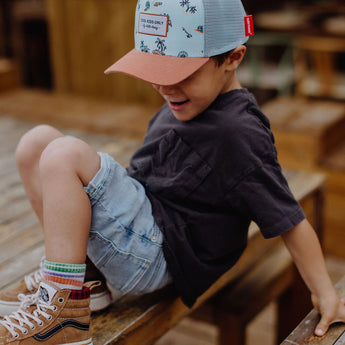 The Blue Island Trucker Cap for children and babies is one of our bestsellers. The trucker style is an iconic style loved by kids and parents alike. Curved brim, colorful cap, original pattern, a real showstopper!
