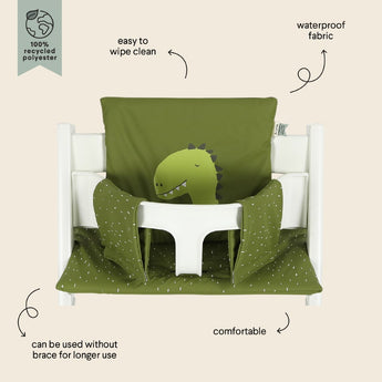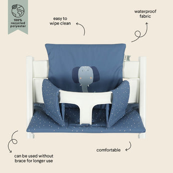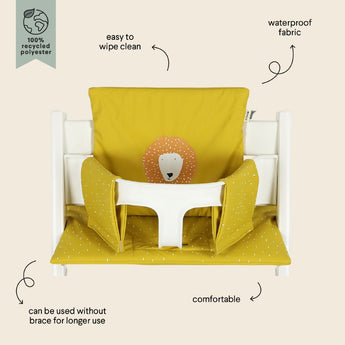 Happy times at the table with your favorite animal friend! This cushion for the Stokke® high chair Tripp Trapp® is fully waterproof and makes it easy to wipe clean after enjoying a nice meal, drink, or snack. The high chair cushions fit the Stokke Tripp Trapp® perfectly. They give your Tripp Trapp® a happy and playful character and at the same time make sure your child is sitting comfortably. Our cushions even grow with them: they can be used without the brace for longer use.