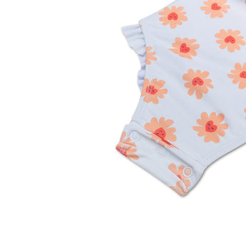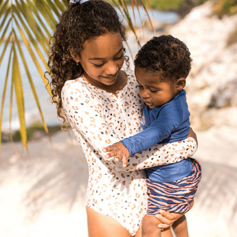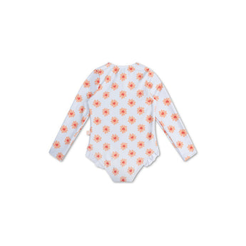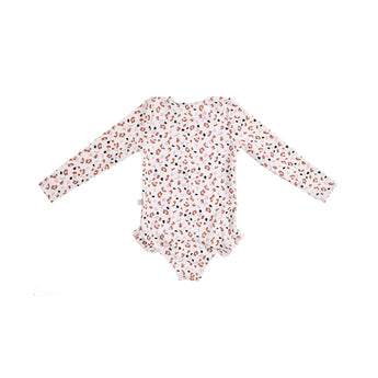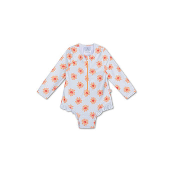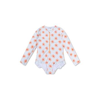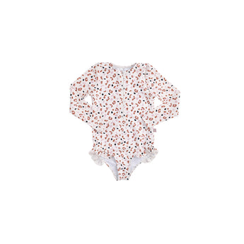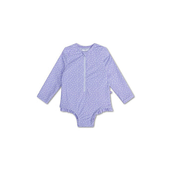 Discover the perfect blend of style and protection with our Girls Rashguard Longsleeve Swimsuit. Designed for sun-soaked adventures, this chic swimwear offers UPF50+ sun protection, ensuring your child stays safe while enjoying the outdoors. Made with high-quality stretch fabric in the Netherlands, it features playful designs, charming prints, and delightful ruffles. Ideal for long days at the beach or pool, this rashguard is a must-have for every young fashionista.