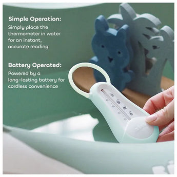 The Beaba Bath Thermometer Green Blue is a user-friendly, accurate device that helps parents monitor the water temperature during bath time. With an easy-to-read display and a fun, colorful design, this bath thermometer ensures that your baby’s bath is always at the ideal temperature, preventing discomfort or potential burns caused by water that is too hot or cold.
