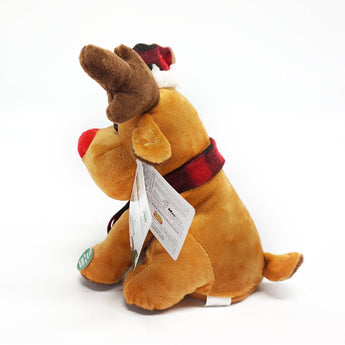 • Our Plush-Reindeer doesn't disappoint! It wiggles and jives to the musicof "Up on a Housetop" adding an extra layer of entertainment to your festivities. Whether it's a solo performance or a dance-off with other holiday decorations, this reindeer is ready to boogie.