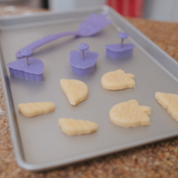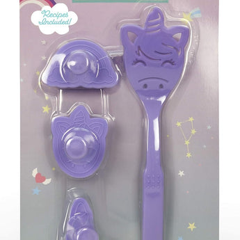 Fun baking set for kids with cookie stamps and a spatula for easy flipping. Made for young chefs, it's safe, easy to use and sparks creativity-perfect for cookies, donuts, pancakes, sandwiches and imaginative kitchen play.